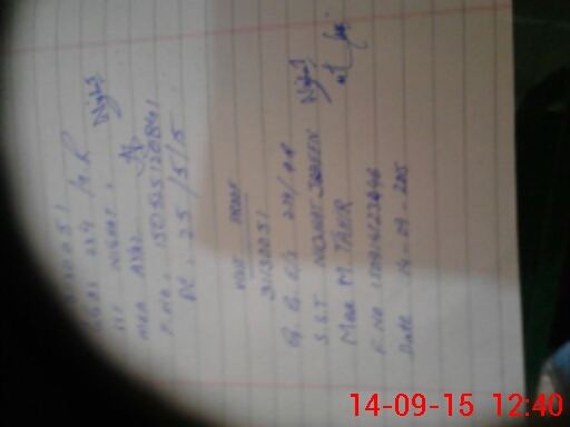 | Monitoring Date: 14-09-2015 | Start Time: 14-09-2015 12:20 PM | End Time: 14-09-2015 12:42 PM | Name of MEA: Mu**** Ta**** BN**** 26 | |