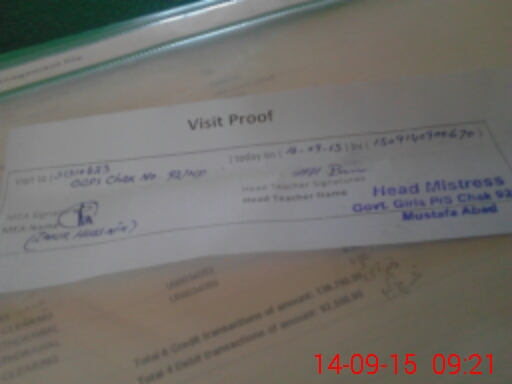 | Attendance Register | Head Teacher | MEA with School | Visit Proof |