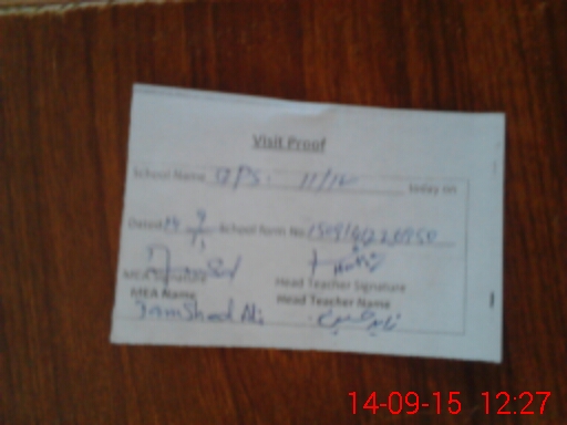 | Attendance Register | Head Teacher | MEA with School | Visit Proof |