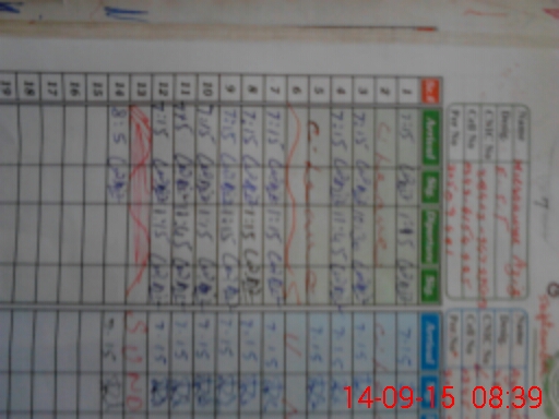 | Monitoring Date: 14-09-2015 | Start Time: 14-09-2015 08:18 AM | End Time: 14-09-2015 08:45 AM | Name of MEA: MU**** IR**** (R**** | |