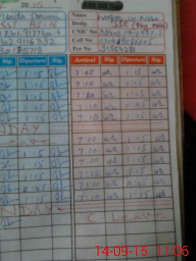 | CNIC | Full Name | Designation | R/C | Absence During Last Calender Month |