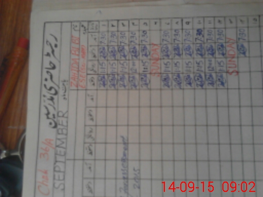 | Monitoring Date: 14-09-2015 | Start Time: 14-09-2015 08:38 AM | End Time: 14-09-2015 09:04 AM | Name of MEA: Kh**** Fa**** | |