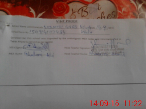 | Certified that this School was Inspected by the Undersigned MEA/DMO Today and the Information Stated Above is as Per Record. | |||||