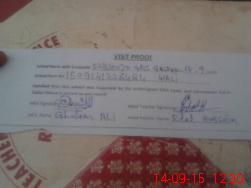 | Attendance Register | Head Teacher | MEA with School | Visit Proof |