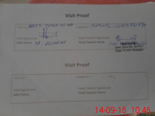 | Attendance Register | Head Teacher | MEA with School | Visit Proof |
