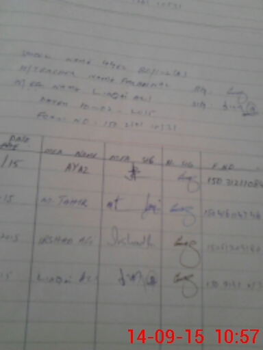 | Monitoring Date: 14-09-2015 | Start Time: 14-09-2015 10:34 AM | End Time: 14-09-2015 11:05 AM | Name of MEA: Li**** Al**** BN**** 11 | |