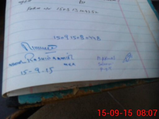 | Monitoring Date: 15-09-2015 | Start Time: 15-09-2015 07:48 AM | End Time: 15-09-2015 08:21 AM | Name of MEA: Ab**** Ra**** Am**** BN**** 28 | |