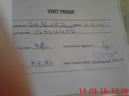 | Attendance Register | Head Teacher | MEA with School | Visit Proof |