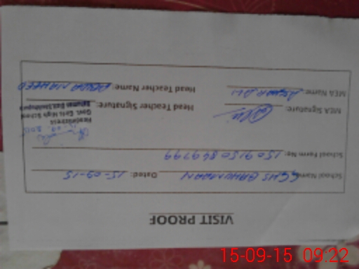 | Monitoring Date: 15-09-2015 | Start Time: 15-09-2015 07:35 AM | End Time: 15-09-2015 09:23 AM | Name of MEA: Mu**** As**** An**** (R**** | |