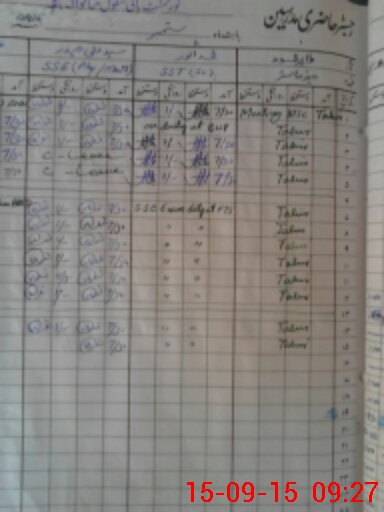 | CNIC | Full Name | Designation | R/C | Absence During Last Calender Month |