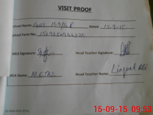 | Attendance Register | Head Teacher | MEA with School | Visit Proof |