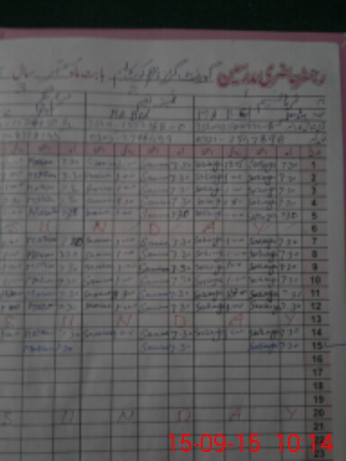 | CNIC | Full Name | Designation | R/C | Absence During Last Calender Month |