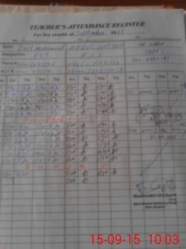 | Name: MA**** US**** Designation: (School Headmaster's/Headmistress's) PST Phone/Cell Number: 03**** |