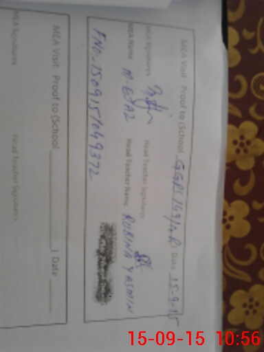 | Attendance Register | Head Teacher | MEA with School | Visit Proof |