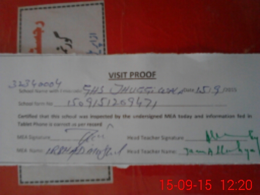 | Attendance Register | Head Teacher | MEA with School | Visit Proof |