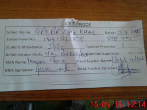 | Attendance Register | Head Teacher | MEA with School | Visit Proof |