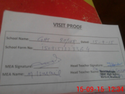 | Attendance Register | Head Teacher | MEA with School | Visit Proof |