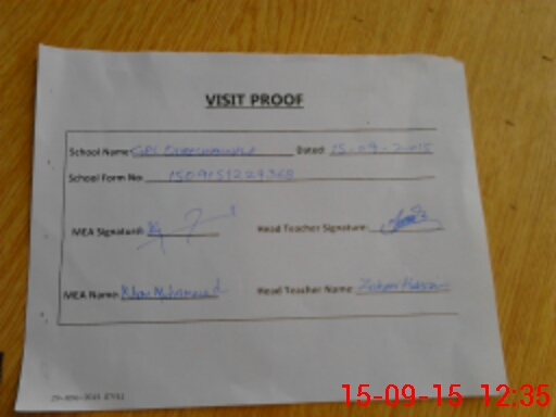 | Attendance Register | Head Teacher | MEA with School | Visit Proof |