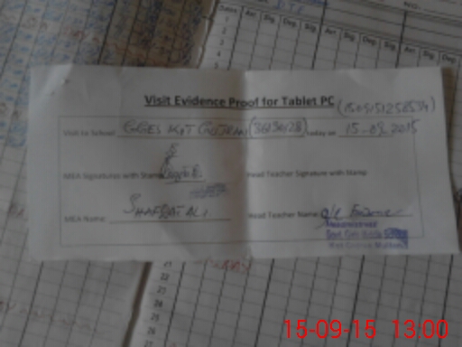| Attendance Register | Head Teacher | MEA with School | Visit Proof |
