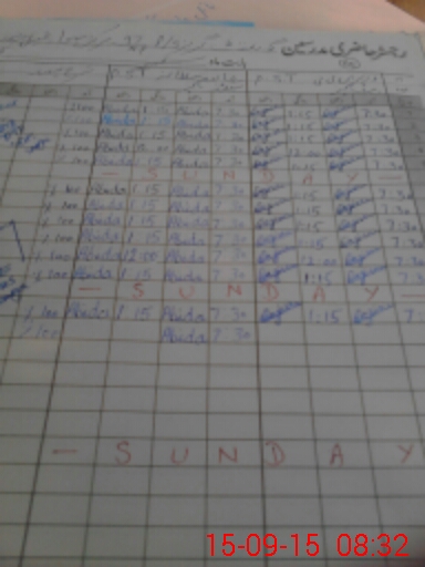 | Monitoring Date: 15-09-2015 | Start Time: 15-09-2015 08:29 AM | End Time: 15-09-2015 09:00 AM | Name of MEA: Za**** Hu**** | |