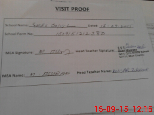 | Attendance Register | Head Teacher | MEA with School | Visit Proof |