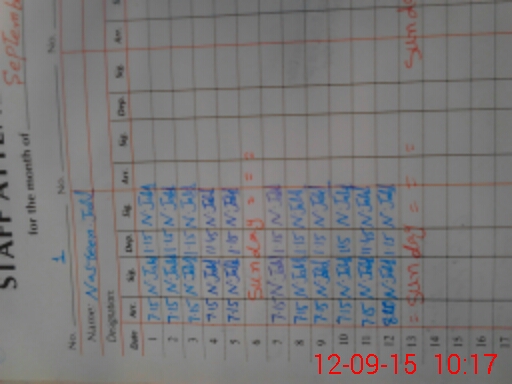 | Monitoring Date: 12-09-2015 | Start Time: 12-09-2015 09:51 AM | End Time: 12-09-2015 10:25 AM | Name of MEA: Sa**** Ak**** | |