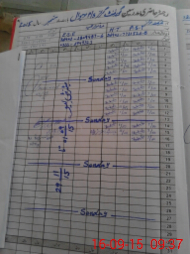 | CNIC | Full Name | Designation | R/C | Absence During Last Calender Month |