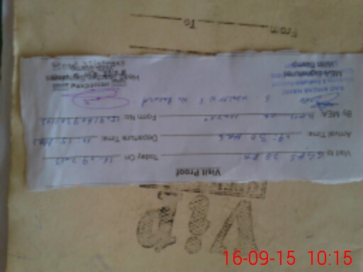 | Monitoring Date: 16-09-2015 | Start Time: 16-09-2015 09:30 AM | End Time: 16-09-2015 10:17 AM | Name of MEA: Kh**** Ha**** (R**** | |