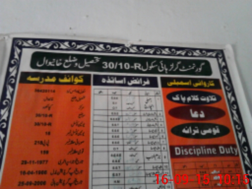 | EMIS Code: 36420114 | Name of School: GGHS 30/10-R, KACHA KHUH | |||
