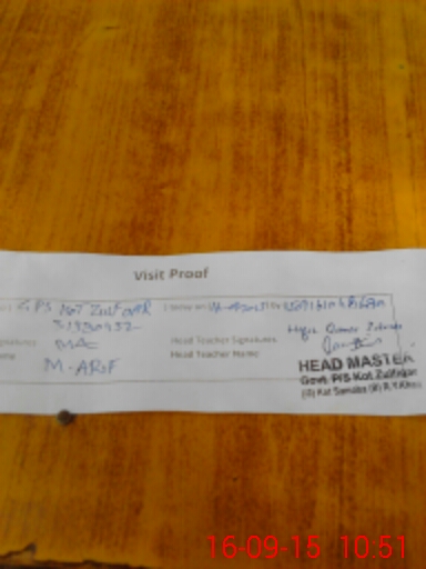 | EMIS Code: 31330452 | Name of School: GPS KOT ZULFIQAR | |||