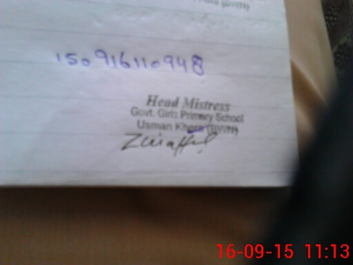 | Name: Iq**** Mu**** Designation: (School Headmaster's/Headmistress's) PST Phone/Cell Number: 03**** |