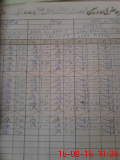 | CNIC | Full Name | Designation | R/C | Absence During Last Calender Month |