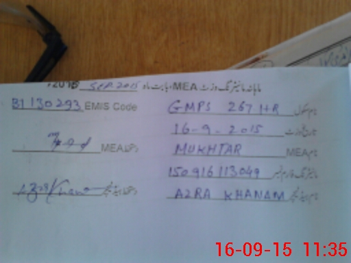 | EMIS Code: 31130293 | Name of School: GMPS CHAK NO 267 HR | |||