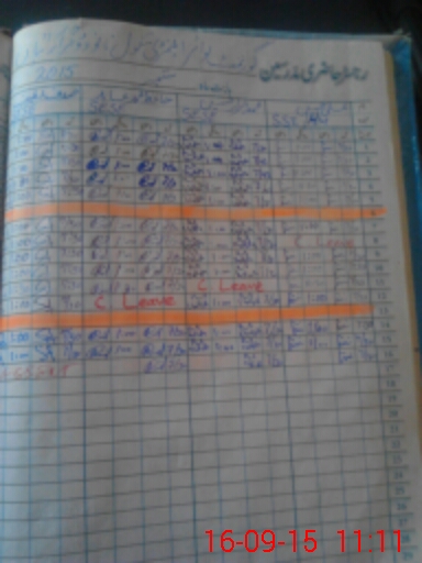 | CNIC | Full Name | Designation | R/C | Absence During Last Calender Month |