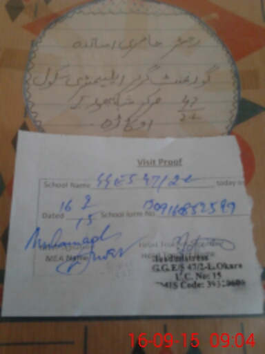 | District: OKARA | Tehsil: OKARA | Markaz: KARMAN WALA - FEMALE | Level: Middle | |