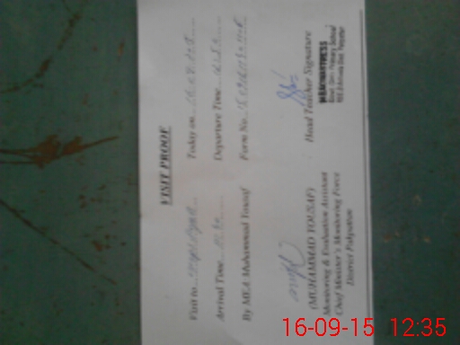 | Monitoring Date: 16-09-2015 | Start Time: 16-09-2015 11:40 AM | End Time: 16-09-2015 12:37 PM | Name of MEA: Mu**** Yo**** (D**** | |