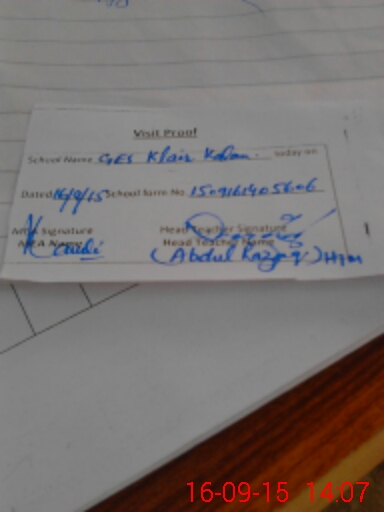 | Attendance Register | Head Teacher | MEA with School | Visit Proof |