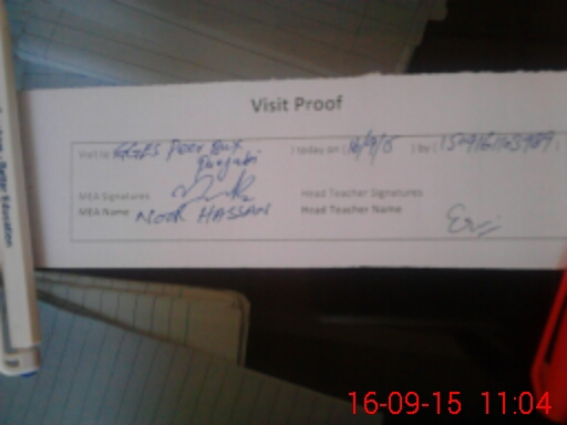| Attendance Register | Head Teacher | MEA with School | Visit Proof |