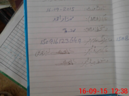 | Monitoring Date: 16-09-2015 | Start Time: 16-09-2015 12:30 PM | End Time: 16-09-2015 12:39 PM | Name of MEA: Mu**** ah**** BN**** 29 | |
