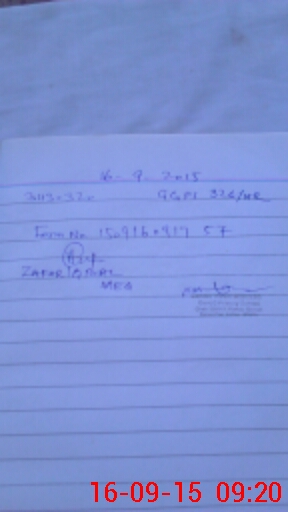 | Monitoring Date: 16-09-2015 | Start Time: 16-09-2015 08:39 AM | End Time: 16-09-2015 09:21 AM | Name of MEA: Za**** Iq**** BN**** | |