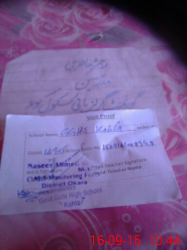 | Name: KI**** NA**** Designation: (School Headmaster's/Headmistress's) S.S.T.(Science) Phone/Cell Number: 03**** |