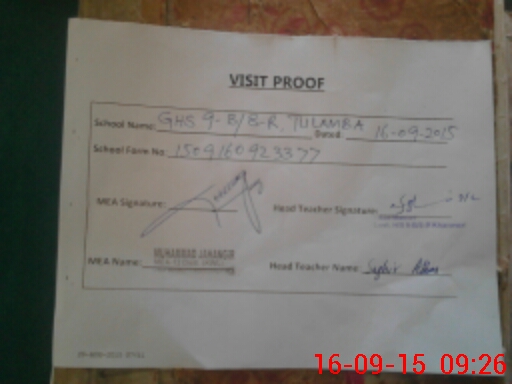 | EMIS Code: 36430027 | Name of School: GHS 9-B/8-R, TULAMBA | |||