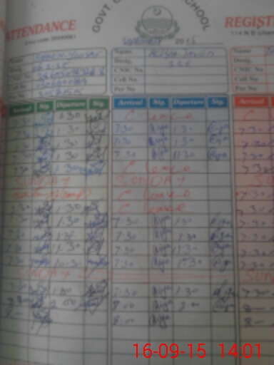 | CNIC | Full Name | Designation | R/C | Absence During Last Calender Month |