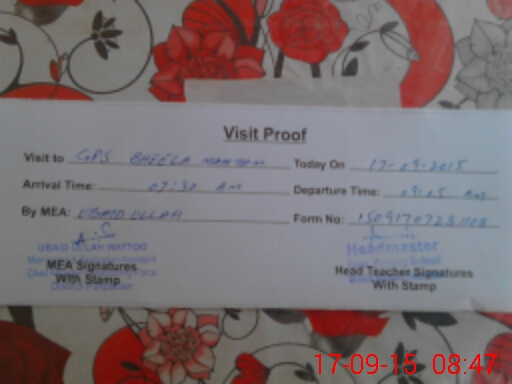 | Attendance Register | Head Teacher | MEA with School | Visit Proof |