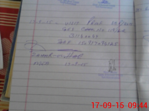 | Monitoring Date: 17-09-2015 | Start Time: 17-09-2015 09:11 AM | End Time: 17-09-2015 09:49 AM | Name of MEA: Za**** BN**** | |