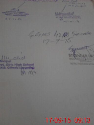 | EMIS Code: 38420077 | Name of School: GGHS CHAK NO.42 NB GILL WALA | |||