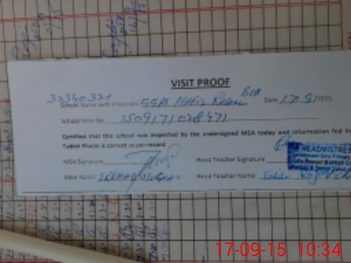 | Attendance Register | Head Teacher | MEA with School | Visit Proof |