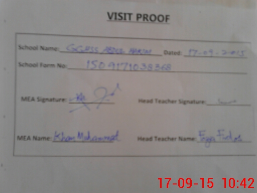 | Attendance Register | Head Teacher | MEA with School | Visit Proof |