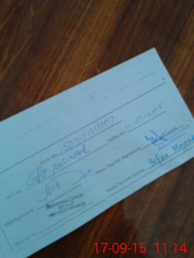 | Name: IR**** MA**** Designation: (School Headmaster's/Headmistress's) PTC/JV Phone/Cell Number: 03**** |