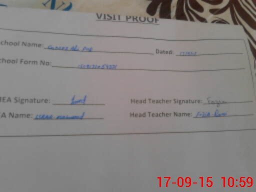 | Attendance Register | Head Teacher | MEA with School | Visit Proof |